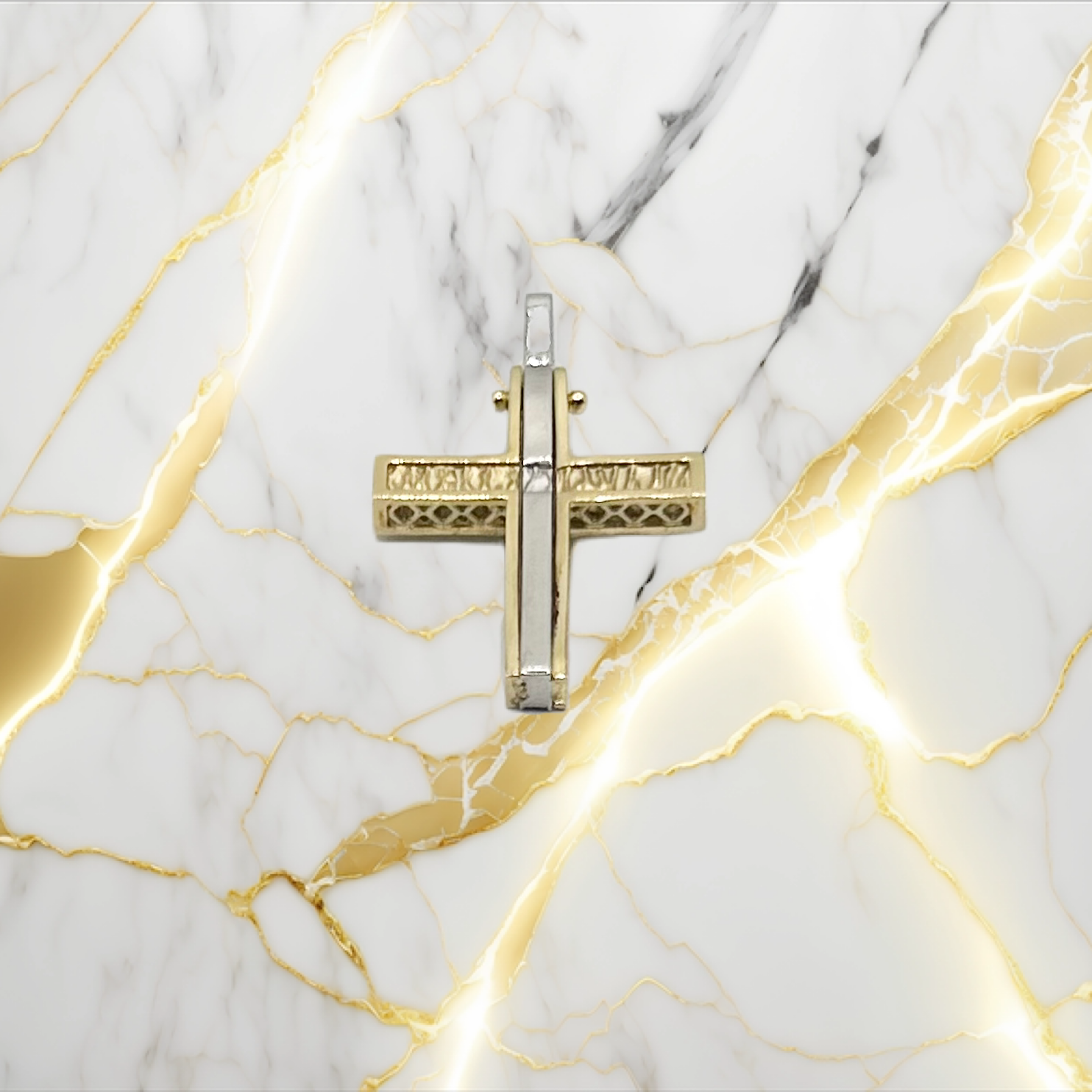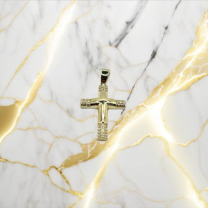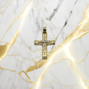 Χρυσός γυναικείος δίχρωμος σταυρός διπλής όψης με ζιργκόν πέτρες σε κ14.