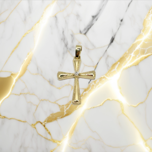 Χρυσός γυναικείος δίχρωμος σταυρός με ζιργκόν πέτρες σε κ14.
